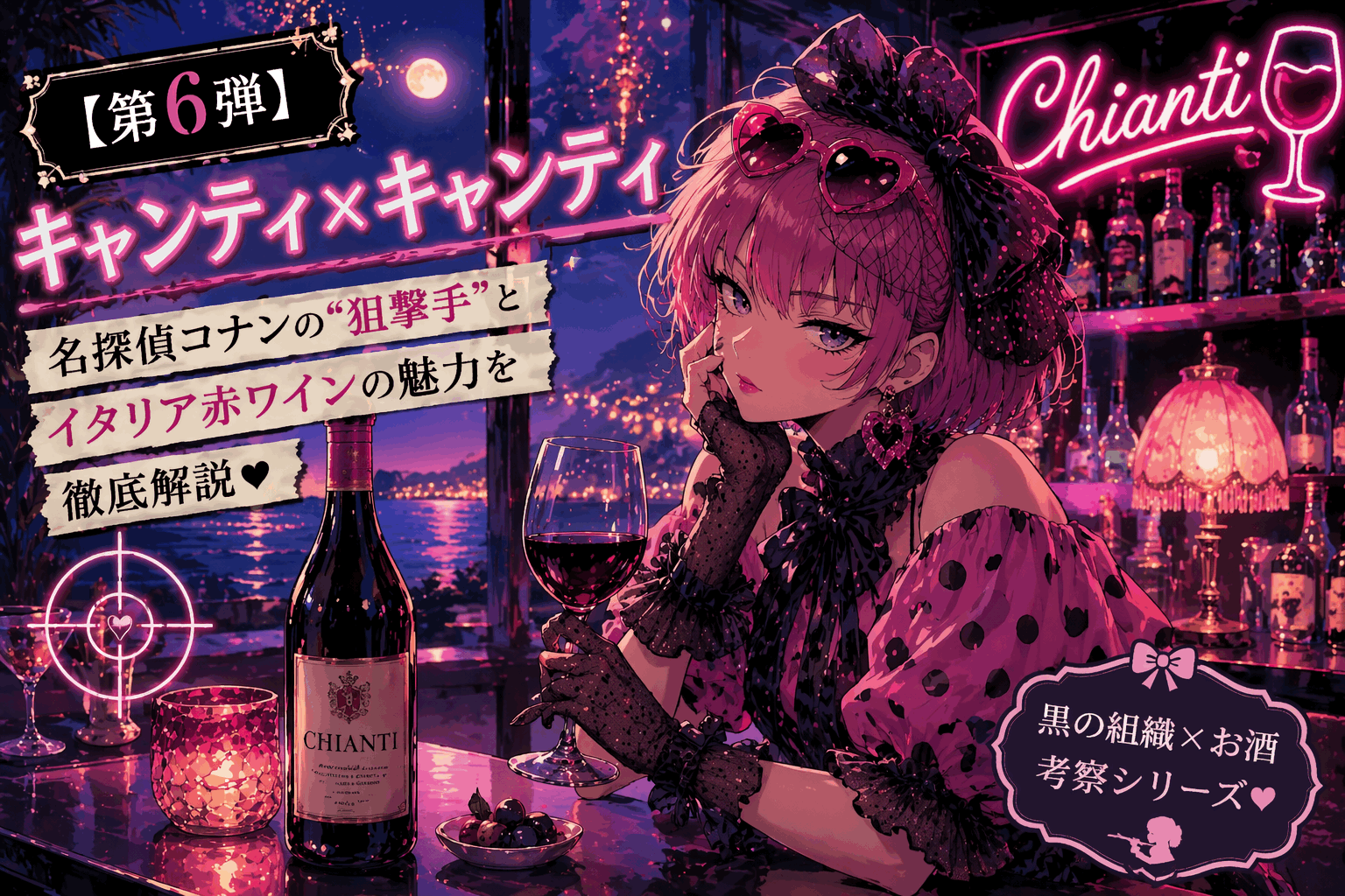 本日の実験テーマは「キャンティ × キャンティ」。 名探偵コナンに登場する黒の組織の狙撃手“キャンティ”と、イタリアを代表する赤ワイン「キャンティ(Chianti)」を掛け合わせて深掘りしていく。